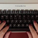 16 Hände, 80 Finger. Hinter antiquierten Schreibmaschinensitzen sitzen